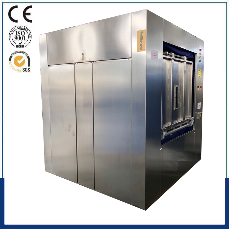 The concept of sanitary isolation washing machine divides the laundry room into two independent operating areas: clean area and non clean area. The washing material is loaded into the machine door located on the side of the non clean area, and after washing, it is taken out from the machine door located on the side of the clean area. Preventing cross contamination of laundry products caused by loading and discharging from non clean areas is an ideal solution for dust-free industries and hospital laundry rooms.